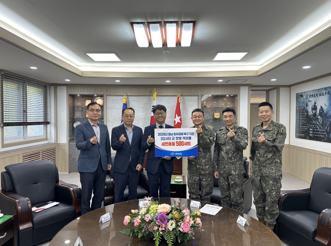 이날 직원들과 함께 제32사단을 방문한 신동헌 도 자치안전실장은 1500만원 상당의 위문 물품을 전달하고, 피해지역 지원에 적극 참여한 장병 10명에게 도지사 표창을 수여했다.