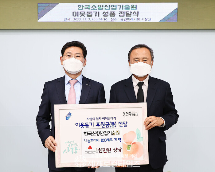 [세계로컬타임즈 이지안 기자] 용인특례시(시장 이상일)는 기흥구 지곡동 소재 한국소방산업기술원(원장 김일수)이 관내 취약계층을 위해 1000만원 상당의 생필품 꾸러미를 기탁했다고 2일 밝혔다.
