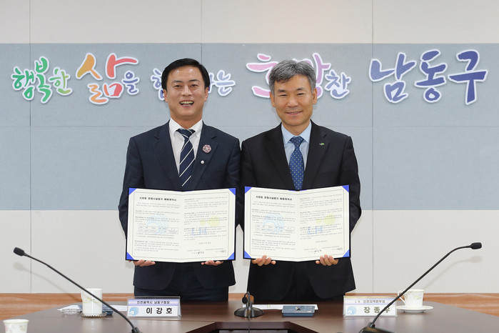 이날 계약식에는 이강호 남동구청장과 한국토지주택공사 인천지역본부장이 참석했다. 이들 두 기관 대표는 매매대금 납부 방법 및 소유권 이전 등에 관한 사항에 대해 서로 계약서에 서명하고 계약을 마무리했다.