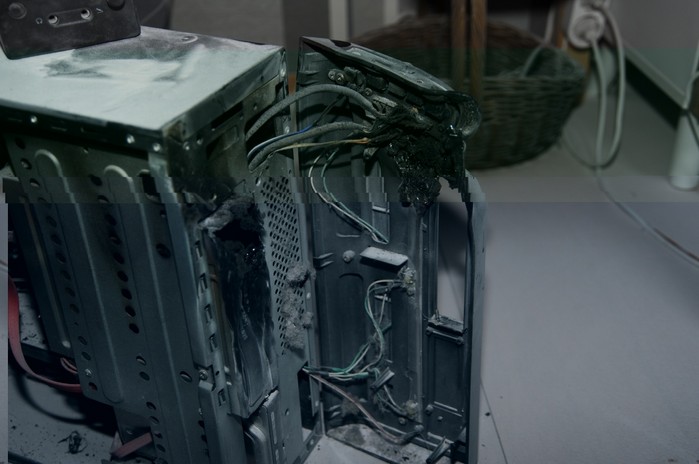 | ▲대전 구 삼성동 주택에서 발생한 화재로 검게 탄 컴퓨버 본체. |