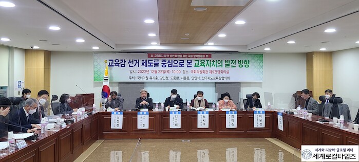 [세계로컬타임즈 김명진 기자] 22일 오전 국회의원회관 제9간담회의실에서 더불어민주당 유기홍.강민정.도종환.서동용.안민석 의원과 전국시도교육감협의회(회장 조희연, 이하 협의회)가 공동주최하는 ‘교육자치 발전 방안 마련을 위한 국회 정책토론회’가 개최됐다.