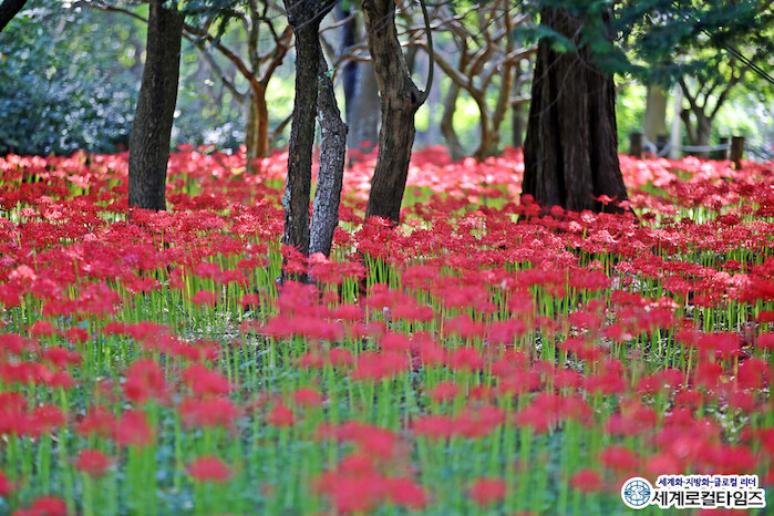 [세계로컬타임즈 조주연 기자] 전북 정읍시가 “내장산수목원에 초가을 정취를 물씬 풍기는 꽃무릇이 만개해 방문객들의 발길을 붙잡고 있다”고 15일 밝혔다.