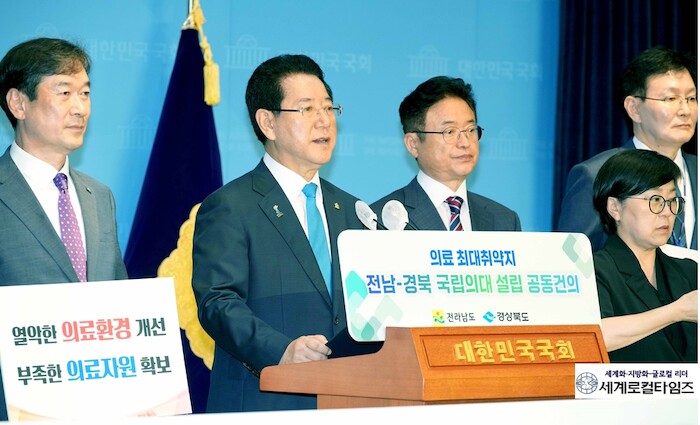 이어 “전라남도와 경상북도 450만 도민은 오랜 세월 이런 기본 권리를 박탈당하며 수많은 불편과 위험을 감내해 왔다”면서 “지역의 의료 환경 개선과 부족한 의료자원 확보를 위해 지역 국립의과대학 설립에 정부와 국회가 적극 나서줄 것”을 강력히 요구했다.