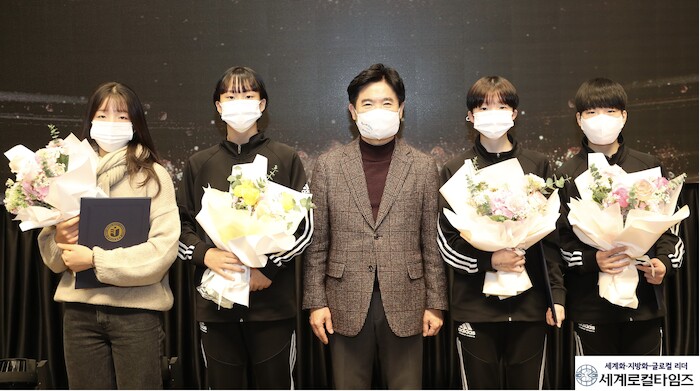 전남교육청은 이날 2022년 국제대회 입상, 전국(소년)체육대회 다관왕, 한국신기록 등 우수한 기록을 수립한 학생선수 22명에게 장학증서를 지급하고, 이들을 지도한 학교운동부지도자 3명에게 공로패를 전수했다.