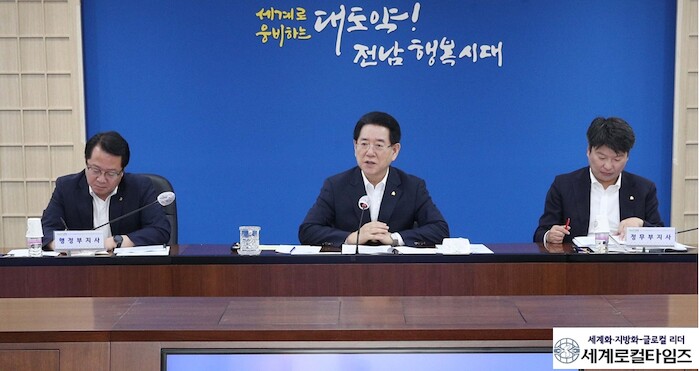 [세계로컬타임즈 김명진 기자] 김영록 전라남도지사는 25일 “기후변화시대 ‘극한 호우’라는 말이 나올 정도로 재해 양상이 다양화, 대형화됨에 따라 사고의 대전환을 통해 과학적 관리체계 도입 등 근본 대책 마련에 나서야 한다”고 강조했다.