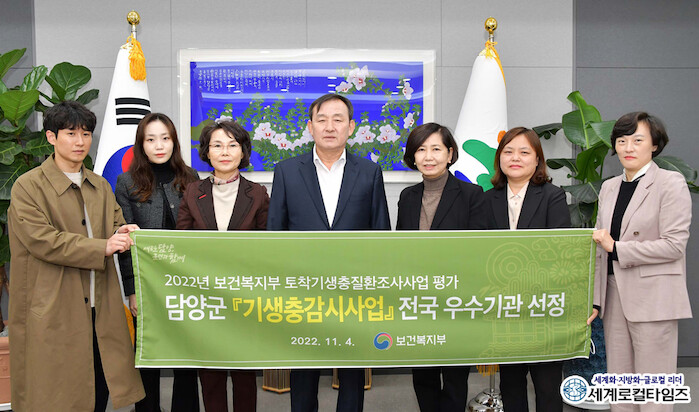 [세계로컬타임즈 이남규 기자] 전남 담양군이 “질병관리청 주관 ‘2022년 국내 토착 기생충질환 조사사업 평가대회’에서 우수기관으로 선정돼 보건복지부 장관 표창을 수상했다”고 4일 밝혔다.