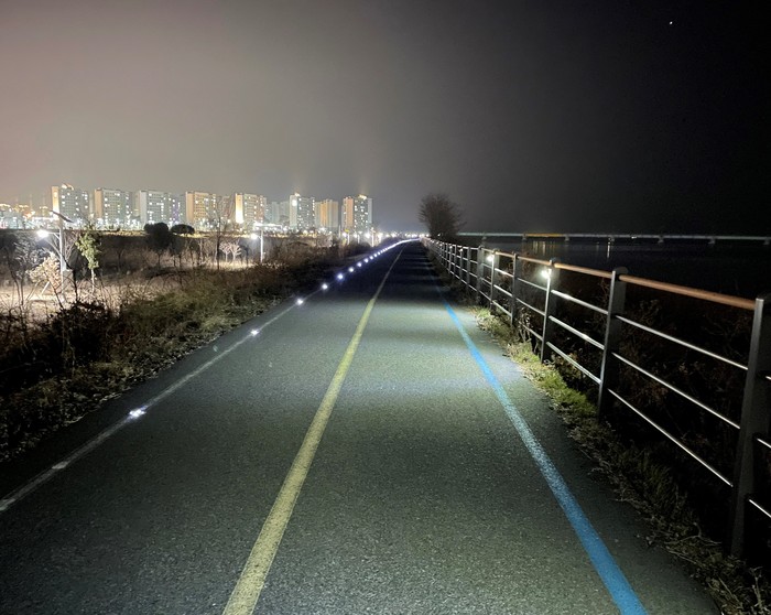 이에 따라 무안군은 지난해 1차 남악수변공원 야간경관 개선사업으로 영산강 제방에서 남창천 자전거길 1.7km 구간에 ▲LED센서벽등 192개 ▲태양광표지병 404개 ▲볼라드등 61개를 설치해 군민들이 야간에도 안전하게 산책할 수 있는 보행 환경을 마련했다.