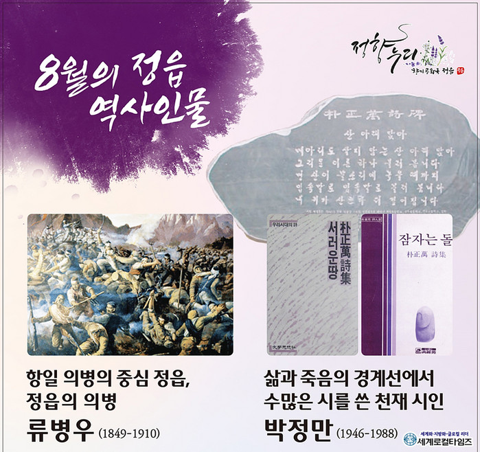 [세계로컬타임즈 조주연 기자] 전북 정읍시가 8월의 역사 인물로 을사조약 후 의병으로 활동한 류병우와 시인 박정만을 선정했다.