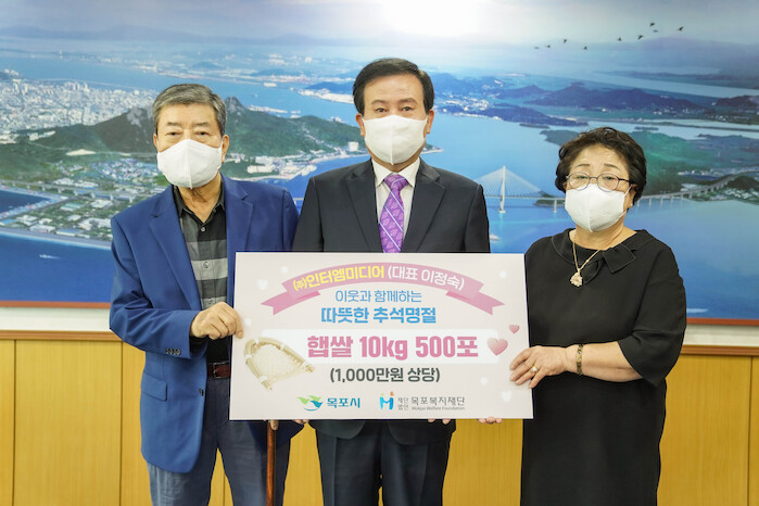 박홍률 목포시장은 “목포시민에게 온정을 나눈 ㈜인터엠미디어에 감사드린다”며 “모두가 행복한 추석 명절을 보낼 수 있도록 꼼꼼히 신경쓰겠다”고 밝혔다.