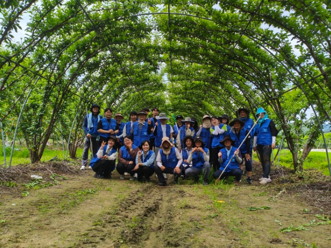 이번 봉사활동에는 영동교육지원청 학부모연합회 회원 및 교육장을 포함한 교직원 20여 명이 참여하여, 자두 순 따기 작업과 배 포장 작업을 도우며 구슬땀을 흘렸다.