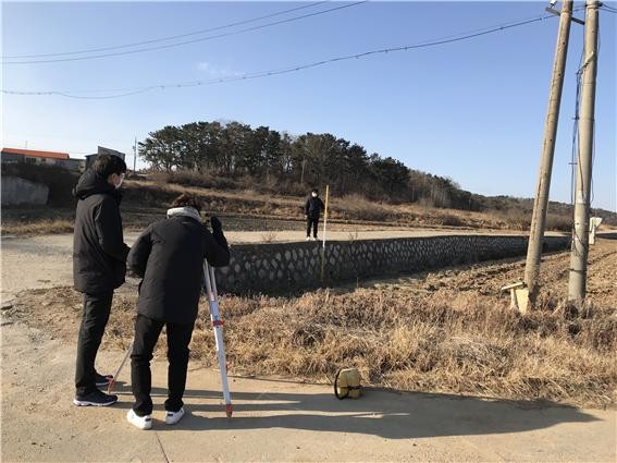 | ▲ 건설기획단이 품 적용을 탈피하기 위해 현장에서 측량·설계를 진행 할 계획이다. (사진=강화군 제공) |