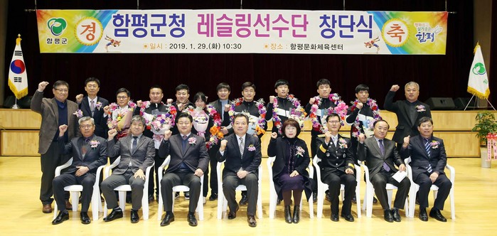| ▲함평군은 29일 함평문화체육센터에서 함평군청 레슬링 선수단 창단식을 개최했다.(사진=함평군 제공) |
