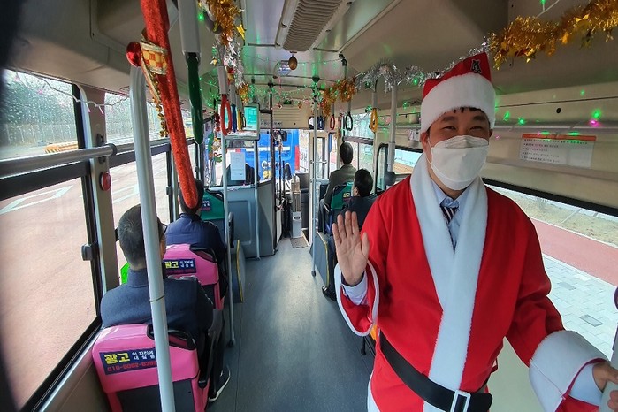도로 위 크리스마스 선물 같은 ‘산타 버스’는 도심 순환버스 80A·B(해양 블루–남부선) 노선 8대 차량에 크리스마스 장식을 하고 산타 복장을 한 기사들이 시내버스 탑승객을 맞이한다.
