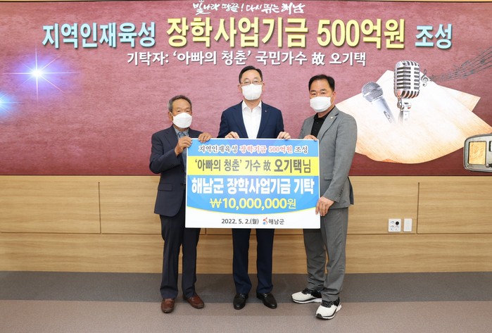 해남출신 가수 故오기택씨의 유언에 따라 재산 일부가 해남군장학사업기금으로 기탁 결정됐다.