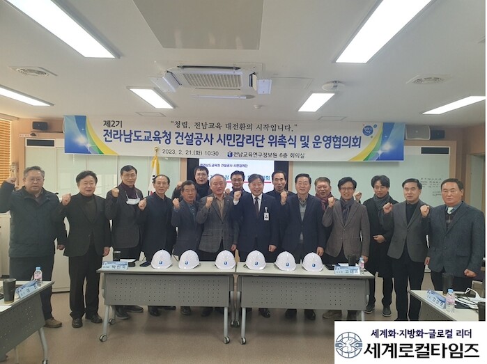 [세계로컬타임즈 김명진 기자] 전라남도교육청이 21일 전남교육연구정보원에서 ‘제2기 건설공사 시민감리단’ 위촉식을 갖고 20명의 감리단원에게 위촉장을 수여했다.