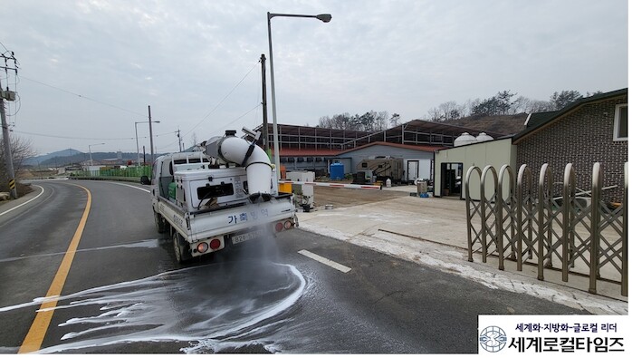 | ▲고병원성 조류인플루엔자 농장 주변 도로 소독(사진=전남도) |