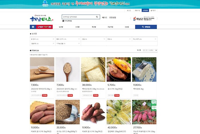 한편 해남군에서 직영하는 온라인 쇼핑몰인‘해남미소’는 해남군내 480개 농어가가 입점해 1,500여 개 상품을 판매하고 있다. 해남군에서 직접 운영하는 엄격한 품질 관리로 지난해 156억여 원의 매출을 올리며, 전국 최고 공공 쇼핑몰로 자리매김하고 있다.
