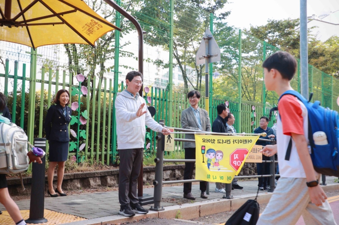 이상일 시장은 이날 김진경 용인신촌초 교장, 녹색어머니회·학부모회 회원 등과 소규모 교통안전 캠페인을 하고, 학생들이 안전하게 횡단보도를 건널 수 있도록 등교하는 어린이들을 살폈다.
