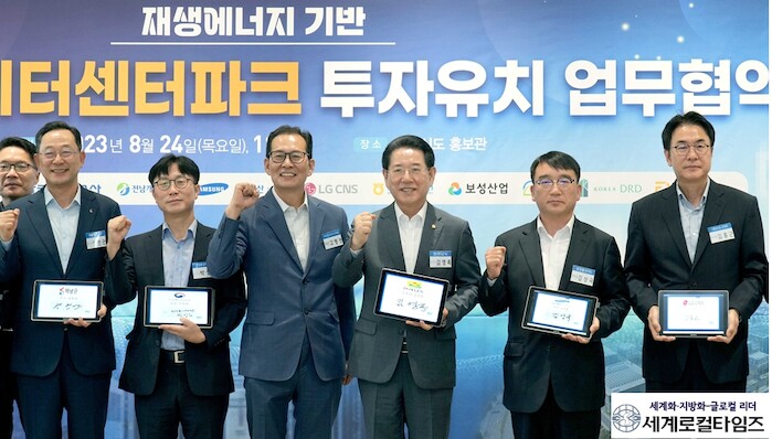 이날 협약식에는 전남도, 산업통상자원부, 해남군, 한국전력공사, 전남개발공사와 국내 데이터센터 선도기업인 삼성물산(주), ㈜LG CNS, NH투자증권(주), 보성산업(주), TGK(주), 데우스시스템즈, 코리아DRD가 참여해 데이터센터파크의 성공적 조성을 위해 힘을 모으기로 했다.