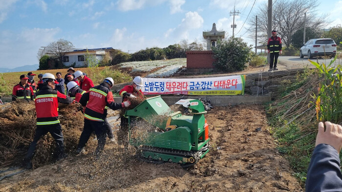 산불전문예방진화대 6명을 1개조로 별도 편성해 산림연접지 산불예방 순찰 중 대상지를 파악한 후 농업부산물 파쇄를 실시하고 있다. 지원대상 요건을 충족하지 못하는 농가나 마을별 협업이 가능한 농지들은 농업기술센터에서 무상으로 임대하는 파쇄기를 이용해 자체 파쇄토록 홍보를 병행할 계획이다.
