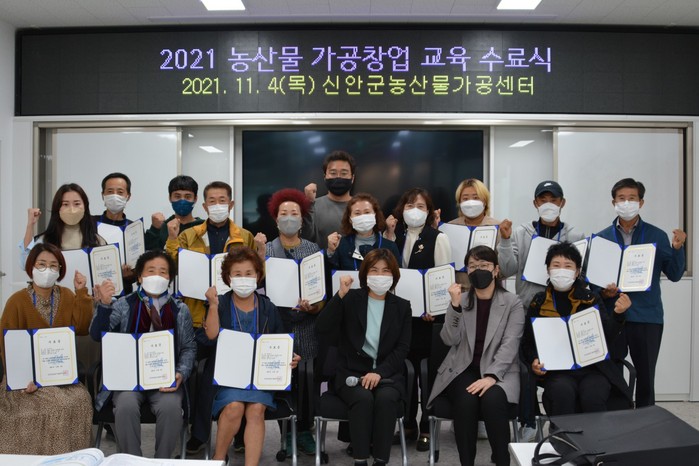 [세계로컬타임즈 조문배 기자] 신안군은 농산물 가공 창업을 희망하는 농업인 22명을 대상으로 농산물가공센터 교육관에서 '농산물 가공 창업 교육'을 실시하고 지난 4일 수료식을 가졌다.