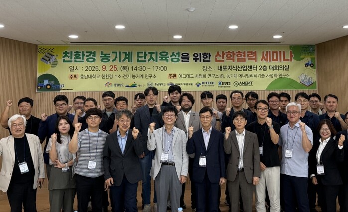 도와 예산군은 25일 한국과학기술원(KAIST)모빌리티연구소 대회의실에서 충남대, 애그테크 사업화 연구소와 공동으로 ‘친환경 농기계 단지 육성을 위한 산학 협력 세미나’를 개최했다.