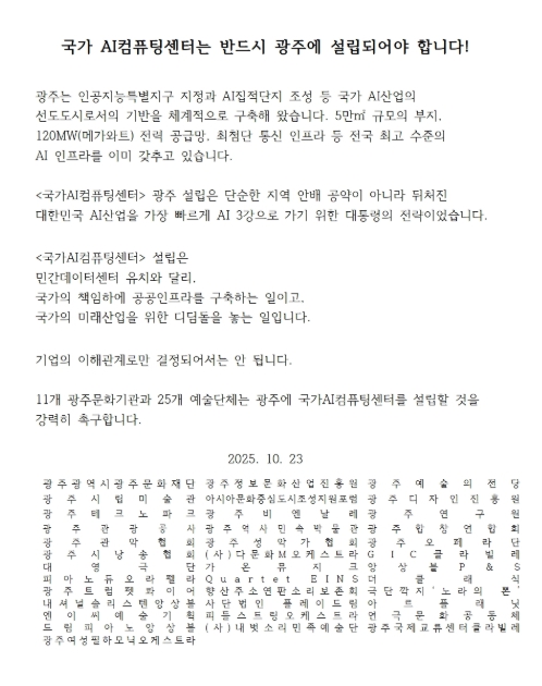 세계로컬타임즈 - 광주 문화예술계, 국가AI컴퓨팅센터 광주설립 촉구