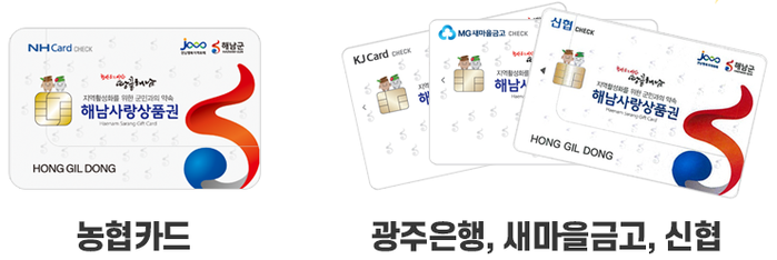 해남사랑카드는 기존에 NH농협카드로만 발급이 됐으나, 농협 이외 3곳의 카드사인 광주은행, 새마을금고, 신협에서도 발급이 가능하다.