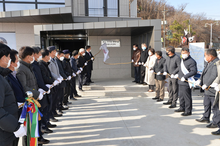 | ▲ 분오항 저어새 생태마을 센터 준공식을 진행하고 있다. (사진=강화군 제공) |