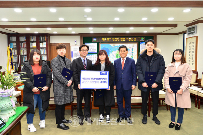 [세계로컬신문 조주연 기자] 사회복지법인 진암사회복지재단(이하 재단)이 전북 고창군 대학생 다섯명을 선정해 장학금 1000만원을 전달했다.