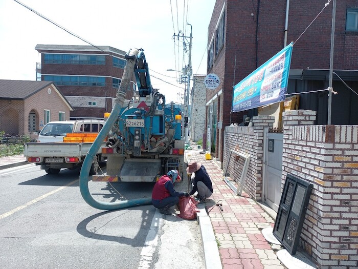 | ▲우수관로 퇴적토 준설 모습 (사진 = 해남군) |