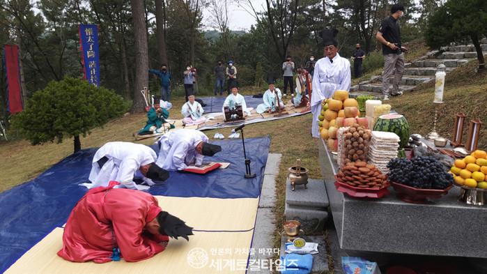 [세계로컬타임즈 안정순 기자] 제66회 백제문화제가 코로나19 확산 방지를 위해 행사 축소와 비대면 방식으로 강행되고 있는 가운데 3일 오후 충남 부여 유왕산에서 유왕산 추모제가 봉행됐다.