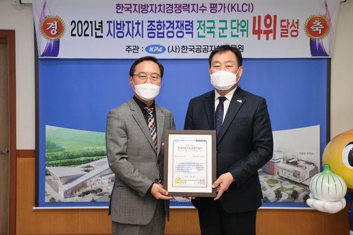 [세계로컬타임즈 박종현 기자]무안군은 (사)한국공공자치연구원이 실시한 2021 한국지방자치경쟁력지수 평가에서 종합경쟁력 분야 전국 군 단위 4위를 달성했다고 밝혔다.