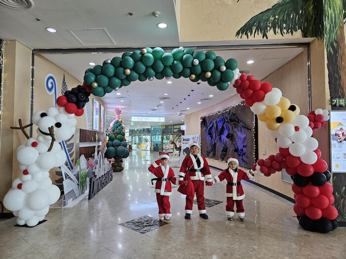 박물관 1층 로비는 대형 트리와 반짝반짝 빛나는 꼬마전구로 크리스마스 분위기를 연출한 가운데 눈사람과 핑크 공룡 등으로 장식해 가족들이 함께 할 수 있는 풍선포토존을 설치했다.