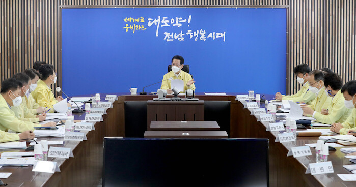 [세계로컬타임즈 김명진 기자] 김영록 전라남도지사는 7일 오전 태풍 ‘힌남노’ 피해복구 대처 회의를 주재하고, 철저한 피해조사와 복구계획 수립으로 피해 도민들께 최대한 혜택을 제공하고, 피해가 큰 경북지역에도 명절 전 복구 손길에 나설 것을 당부했다.