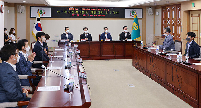 한편 대전시와 동구, 중구는 한국특허전략개발원 대전 이전을 위한 임차 입주 공간 확보지원 및 신청사 건립 관련 인·허가 등 행정적 지원과 이주 직원들의 안정적인 정착을 지원하기로 했다.