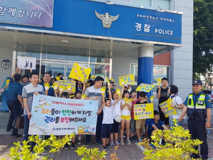 봉동지역아동센터 소속 아이들이 직접 만든 피켓을 들고 봉동초등학교와 봉동농협, 봉동파출소 등 읍내에서 거리행진을 했다.