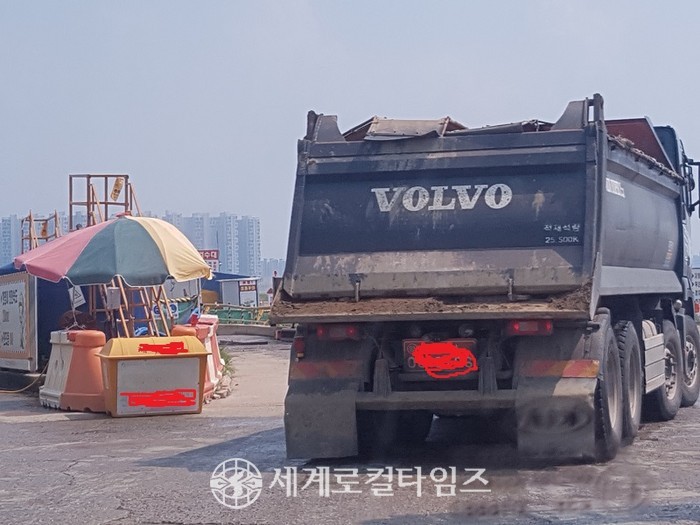 [세계로컬타임즈 박대명 기자] 시흥시 월곶동 아파트 건설현장에서 덤프차량 2대가 매립지로 반출하는 모습이 포착 됐다.