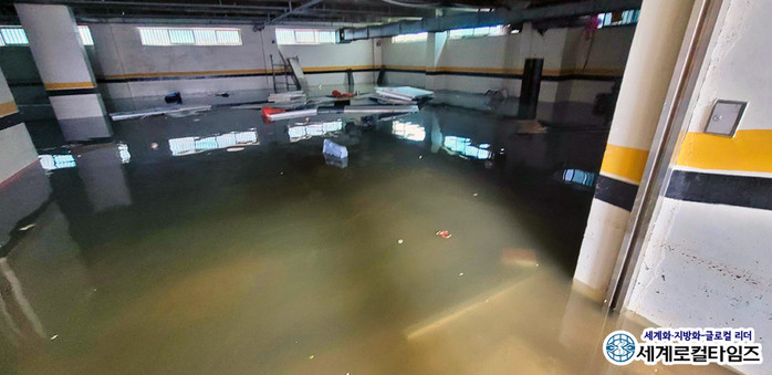 | ▲지난 8일 익산시 중앙동 한 건물이 호우로 침수됐다. (세계로컬타임즈 DB) |