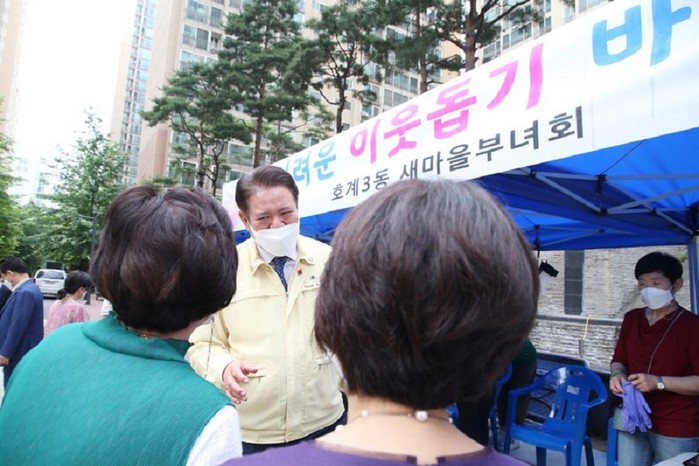 또 최 시장은 호계3동 새마을부녀회가 개최한 이웃돕기 바자회장이 열린 아파트단지로 이동해 주민들과 소통의 시간을 가졌다.