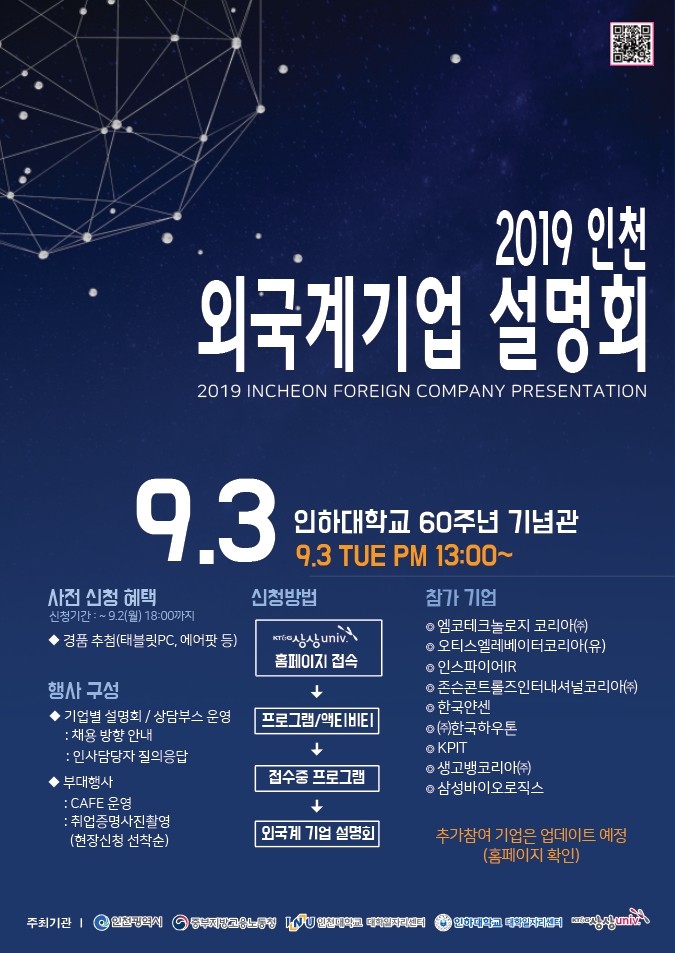 | ▲ 3일 인하대 60주년기념관에서 열리는 2019 외국계기업 체용설명회 포스터(제공=인하대) |