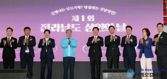 [세계로컬타임즈 김명진 기자] 전국상인연합회 전남도지회는 전통시장 상인을 격려하고 화합하는 장을 마련하기 위해 4일 고흥 팔영체육관에서 ‘제1회 전라남도 상인의 날’을 개최했다. 상인들을 위한 행사로는 국내 처음이다.