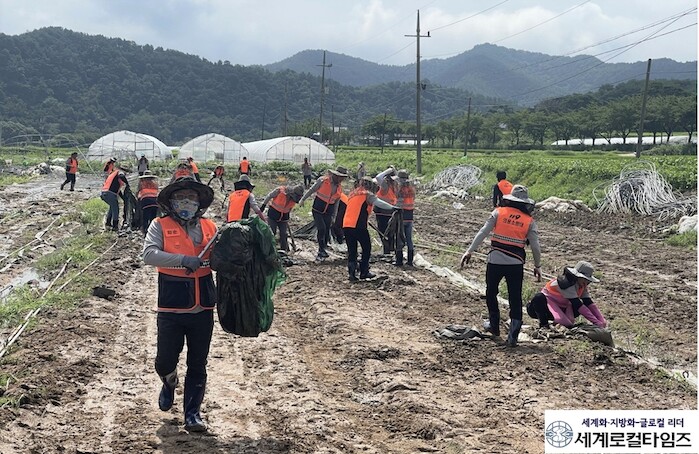 이들은 침수된 하우스 구조물 철거, 농경지 복구 등 봉사활동을 펼치고 피해주민에게 성금도 전달하며 신속한 복구에 힘을 보탰다.