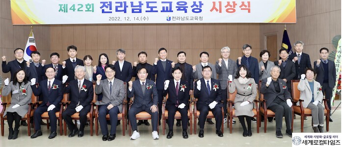 [세계로컬타임즈 김명진 기자] 전라남도교육청이 14일 청사 2층 대회의실에서 제42회 전라남도교육상 시상식을 갖고 5명의 수상자에게 표창장과 부상을 수여했다.
