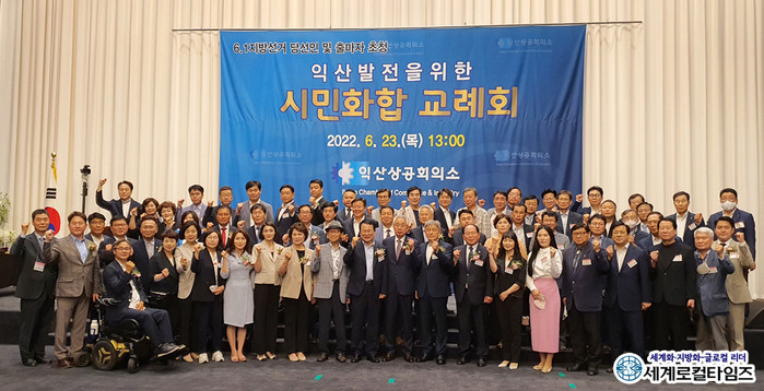 23일 익산상공회의소에 따르면 이날 오전 웨스턴라이프호텔 그랜드볼륨홀에서 6·1 지방선거 당선인 초청 시민화합 교례회가 개최됐다.