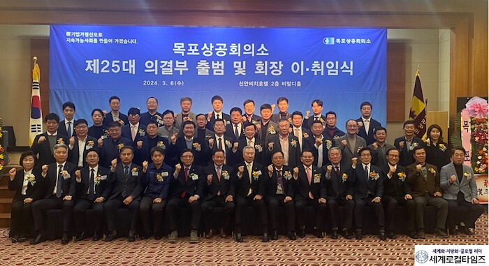 [세계로컬타임즈 김명진 기자] 전남 목포상공회의소가 6일 목포 신안비치호텔에서 ‘제25대 의결부 출범 및 회장 이·취임식’을 개최했다.