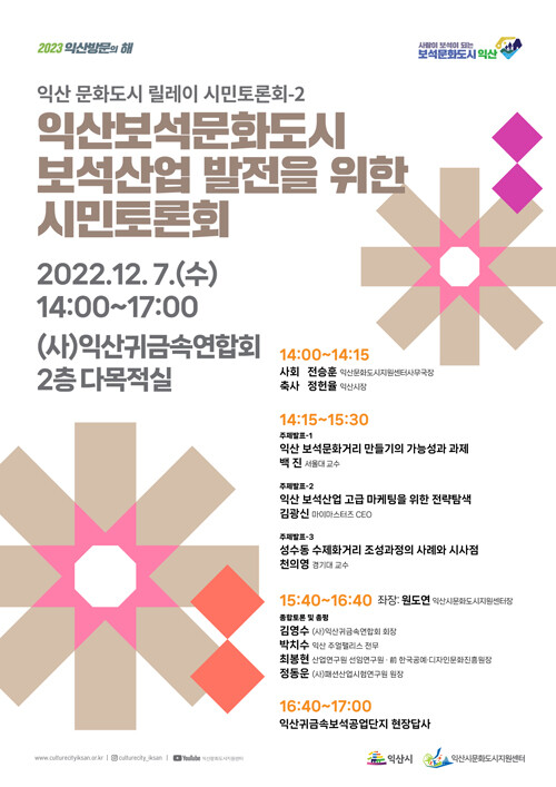 7일 익산시에 따르면 이날 ‘익산보석문화도시 보석산업 발전을 위한 시민토론회’가 개최됐다.