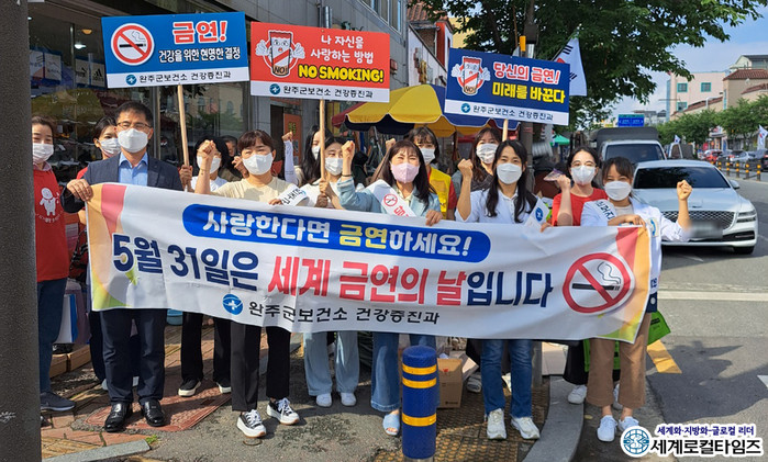 [세계로컬타임즈 조주연 기자] 전북 완주군이 제35회 ‘세계 금연의 날’을 맞아 금연 캠페인을 펼쳤다.
