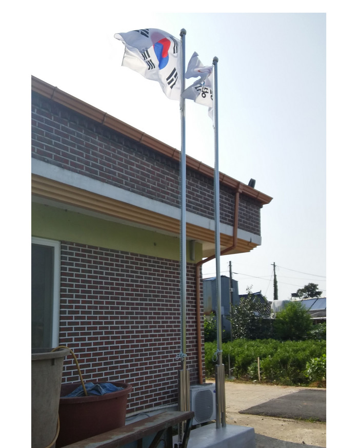 | ▲ 영광군 시골마을 경로당 앞에 설치된 국기게양대 모습. |