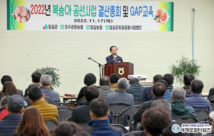 19일 임실군에 따르면 지난 17일 복숭아 공선회는 산지유통센터 선별장에서 결산총회를 개최하고 2022년도 사업결산 보고 및 2023년도 사업계획 등을 협의하고 한 해 공로를 치하하는 우수 출하자 시상을 진행했다.